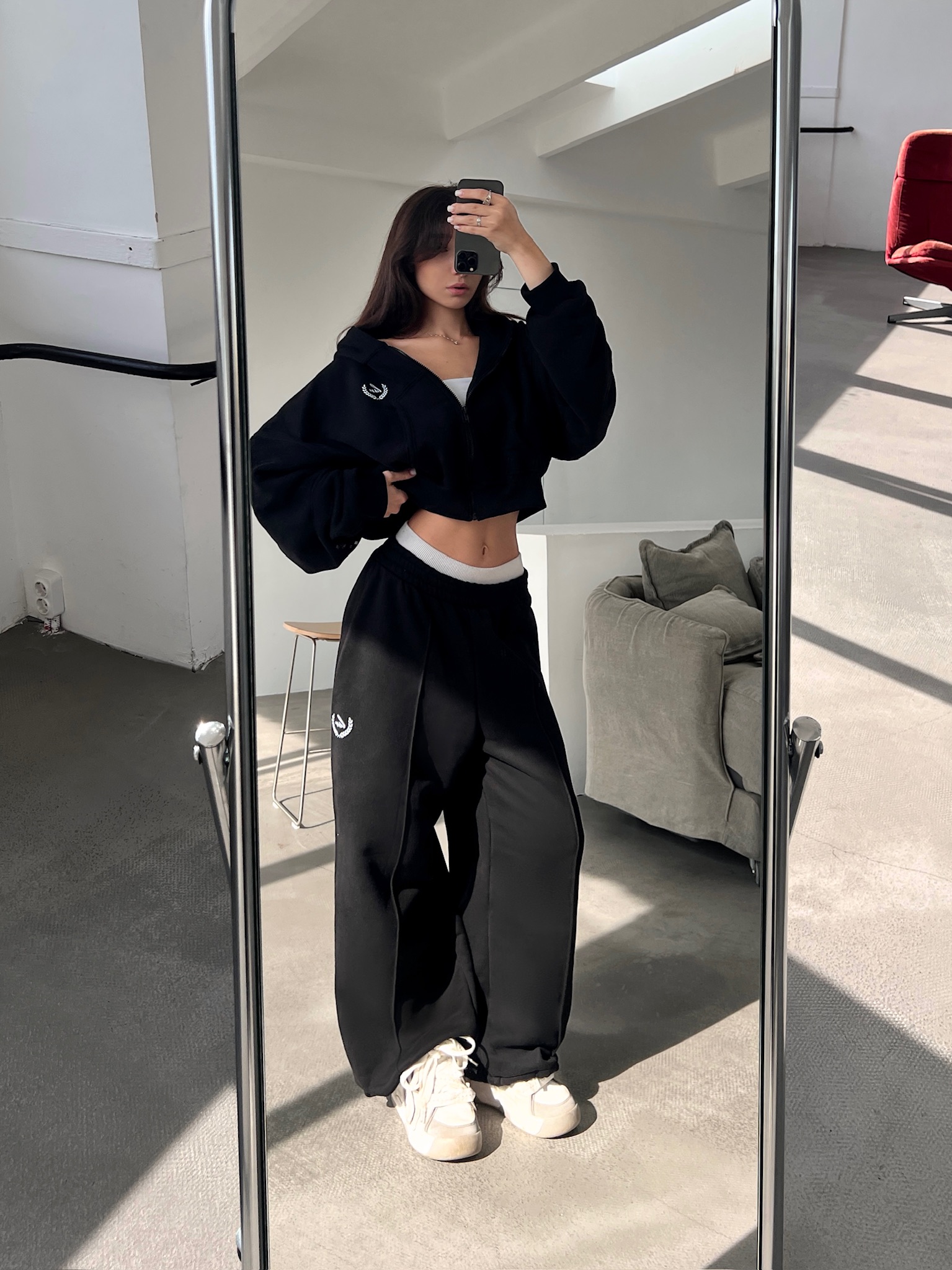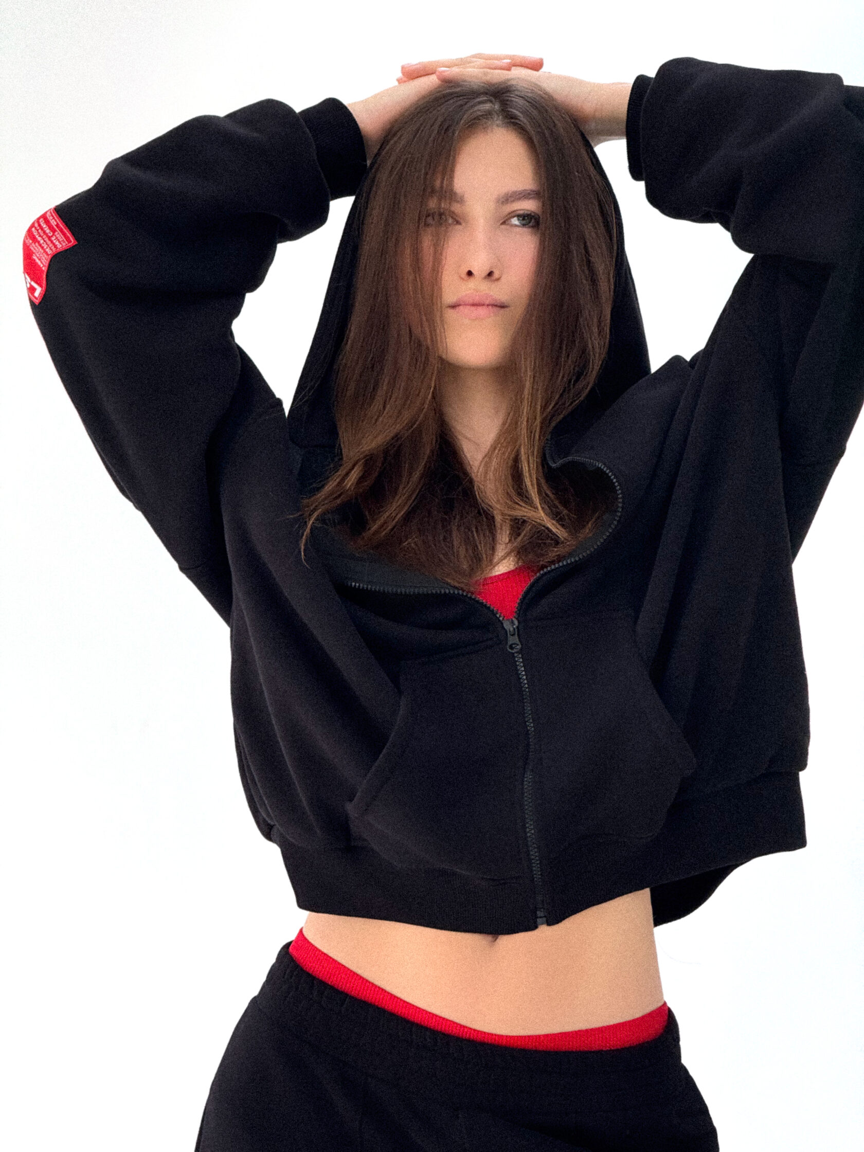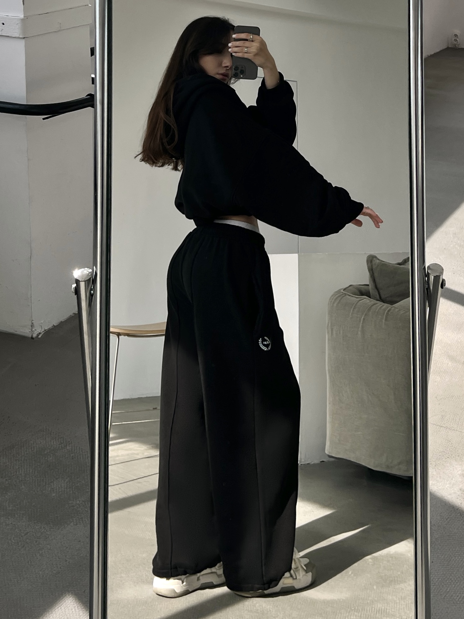 Костюм из 80% хлопка и 20% полиэстра свободного кроя. Oversized Цвет: черный. Сделано в России, собственное производство. Рекомендация по уходу за изделием: деликатная машинная стирка на 30 градусах, до 600 оборотов при отжиме.