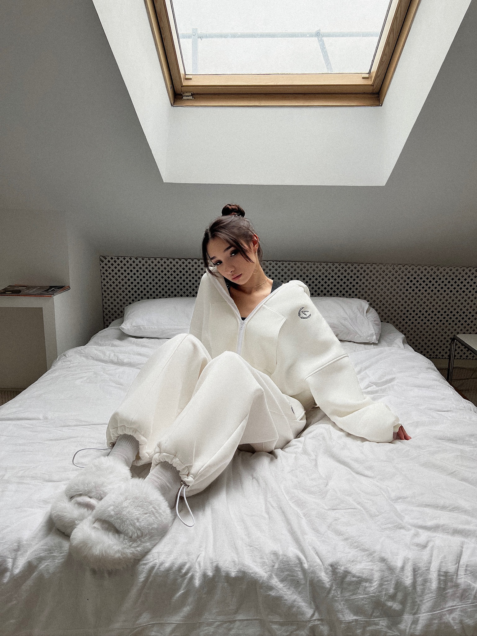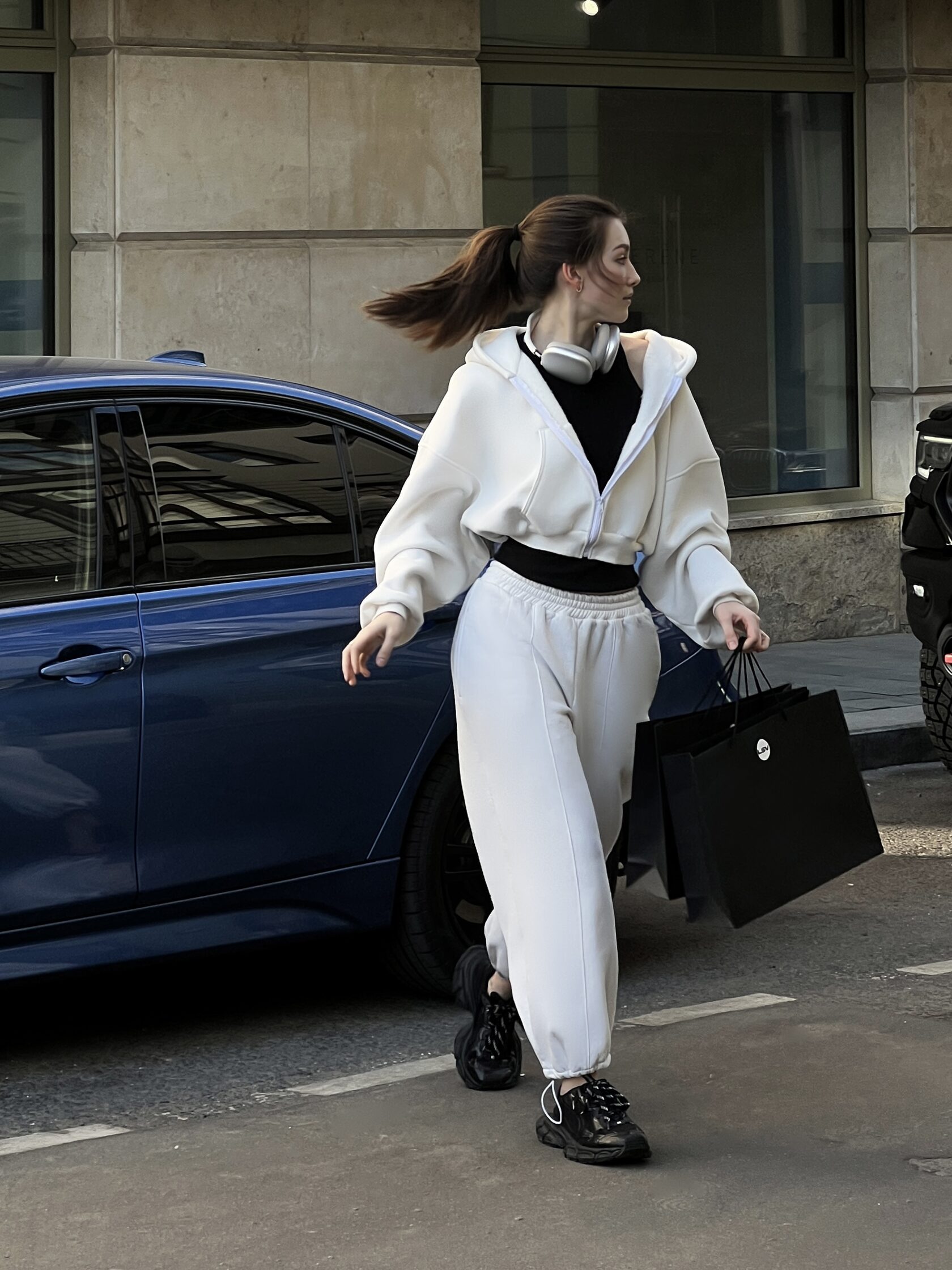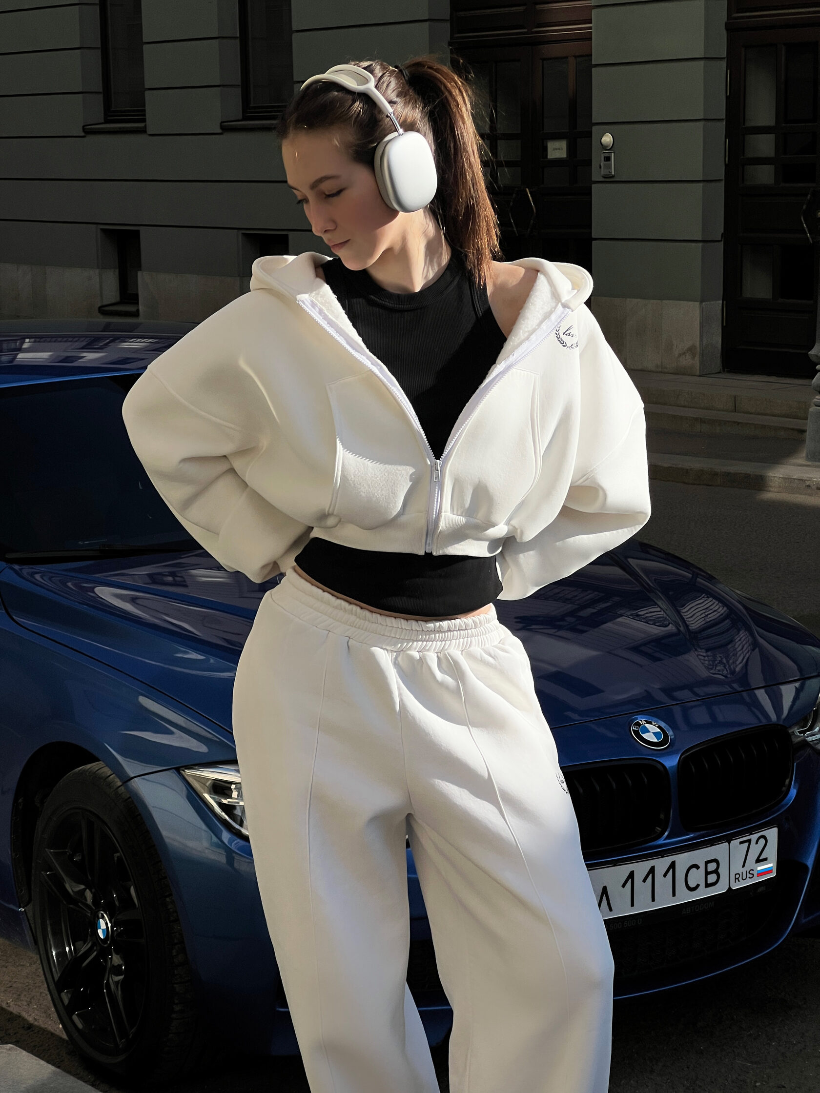 Костюм из 80% хлопка и 20% полиэстра свободного кроя. Oversized Цвет: белый. Сделано в России, собственное производство. Рекомендация по уходу за изделием: деликатная машинная стирка на 30 градусах, до 600 оборотов при отжиме.