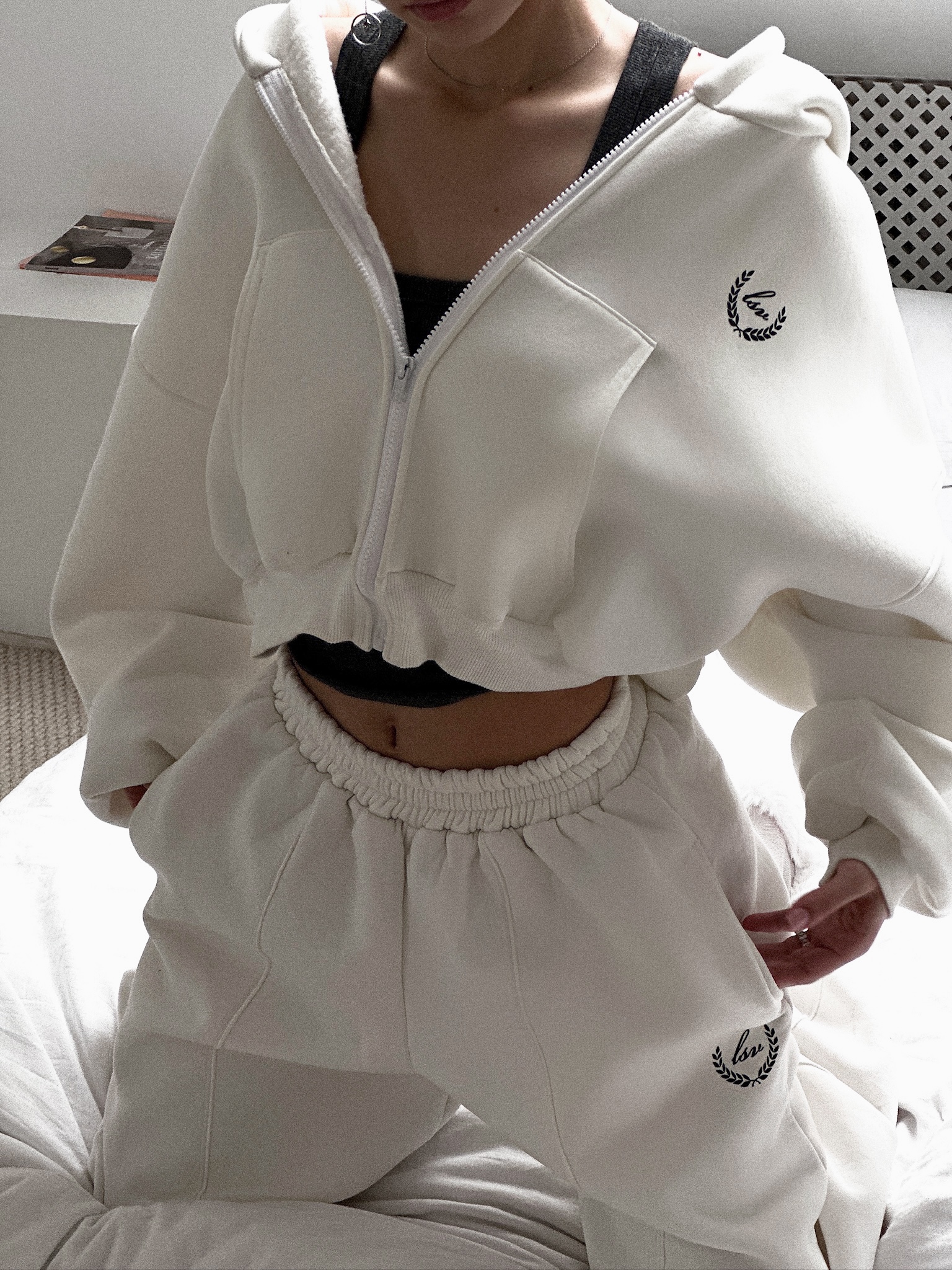 Костюм из 80% хлопка и 20% полиэстра свободного кроя. Oversized Цвет: молочный. Сделано в России, собственное производство. Рекомендация по уходу за изделием: деликатная машинная стирка на 30 градусах, до 600 оборотов при отжиме.